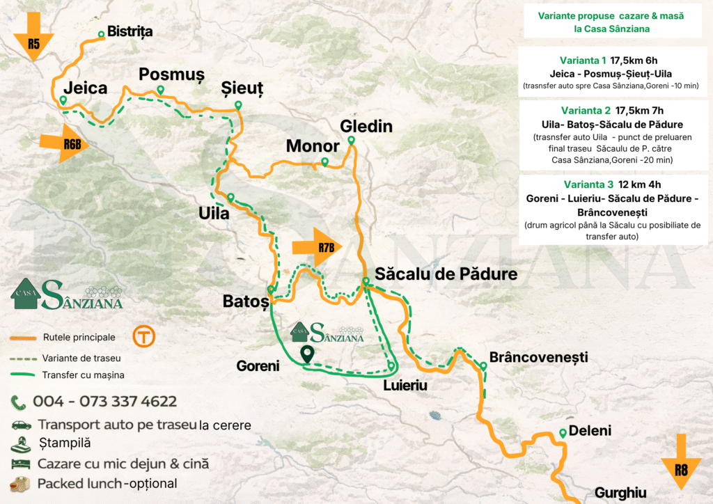 Casa Sânziana offers alternative route options to cover 50 km, with approximately 20% through the Highlands Region . All routes start and end at the same accommodation point, allowing you to explore the trails easily.